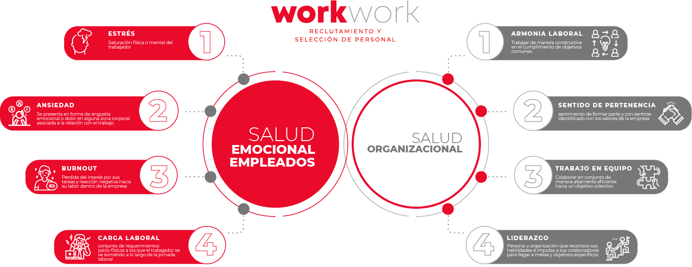 WorkWork cuenta con el servicio de psicoterapia presencial (Riviera Maya) o vía remota, generando planes de atención psicoterapéutica personalizados para cada uno de tus empleados dentro de organización o fuera de ella (Psicoterapia On-line). Cada plan esta elaborado por expertos en el cuidado de la salud emocional. Te ayudamos a la medición de tu clima laboral, bajo encuestas de la NOM 035 y entregamos todo el soporte necesario para evitar multas.